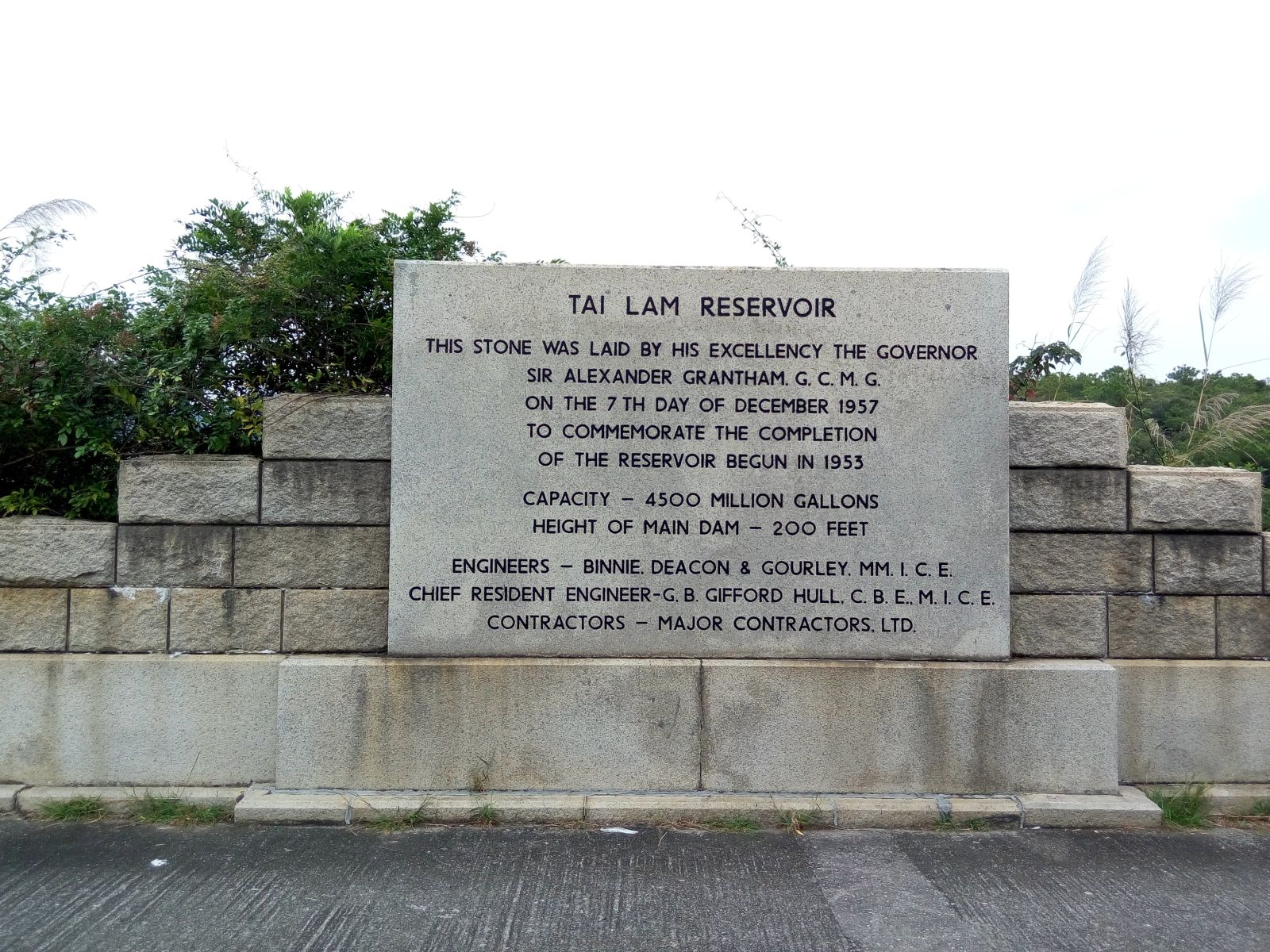| # 85 : 本石碑是由葛量洪阿歷山大爵士於1957年12月7日立碑為誌,本塘容量為4500百萬加崙,水深200尺。
