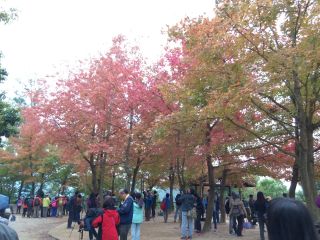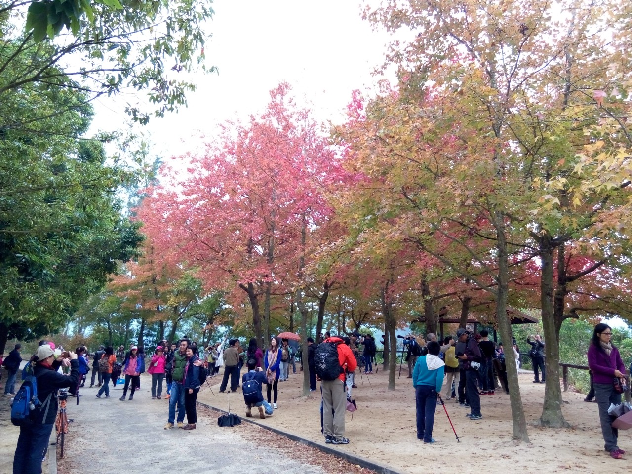 近年很有名的楓香林。雖然這些不是正式的楓樹,但也充滿着涼冬韻味。