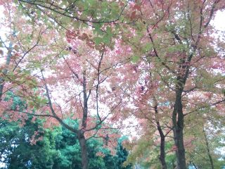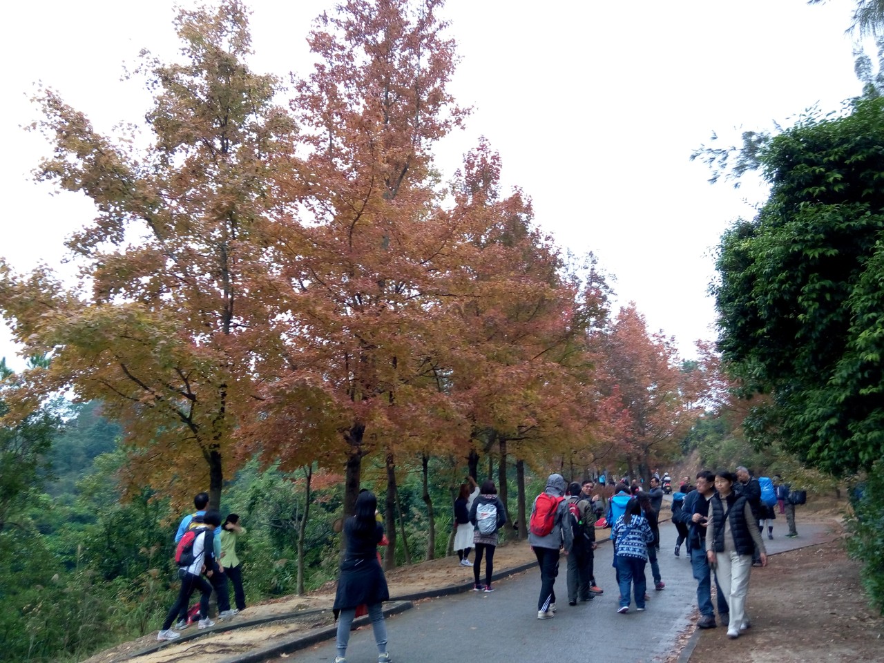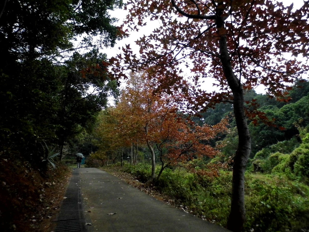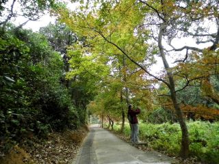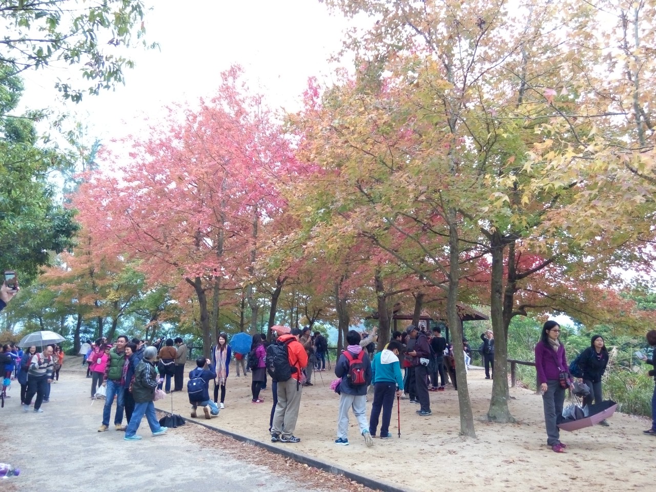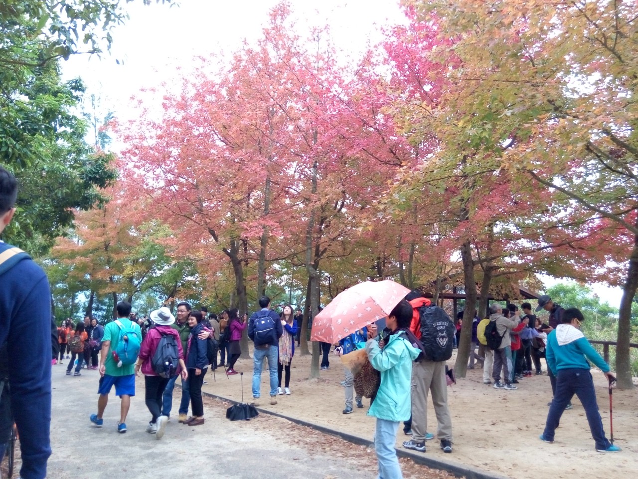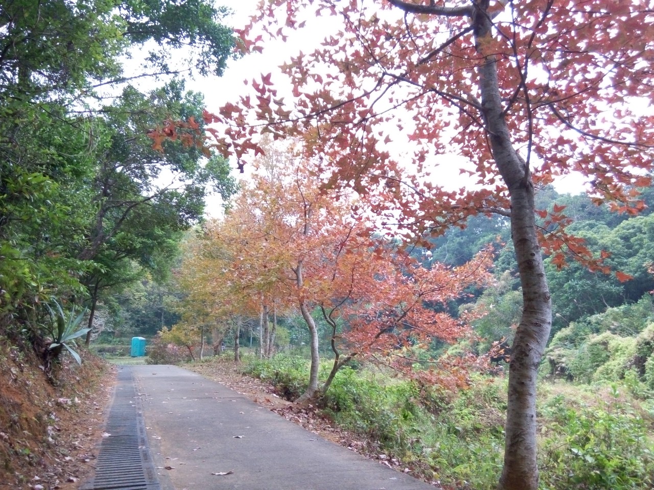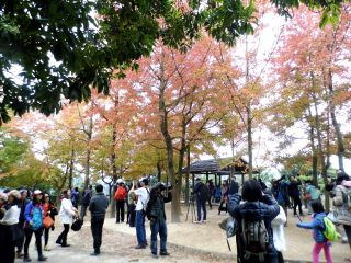 近年很有名的楓香林。雖然這些不是正式的楓樹,但也充滿着涼冬韻味。
